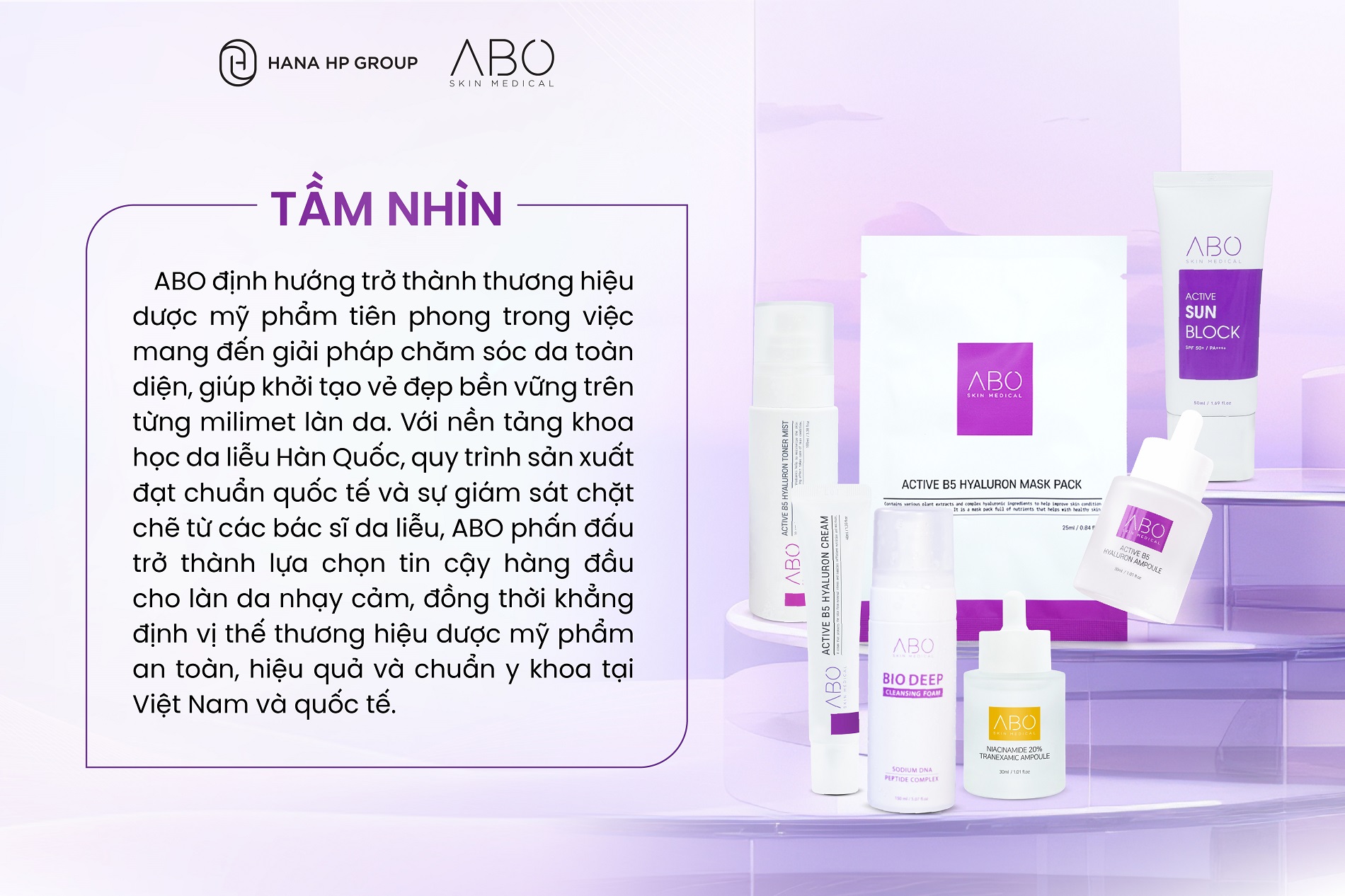 Là thương hiệu dược mỹ phẩm đến từ Hàn Quốc, mỗi sản phẩm ABO Skin Medical đều đáp ứng các tiêu chí phù hợp với làn da nhạy cảm nhất. Quy trình sản xuất đạt chuẩn GMP và được kiểm soát chặt chẽ bởi các bác sĩ da liễu và nhà sinh dược học