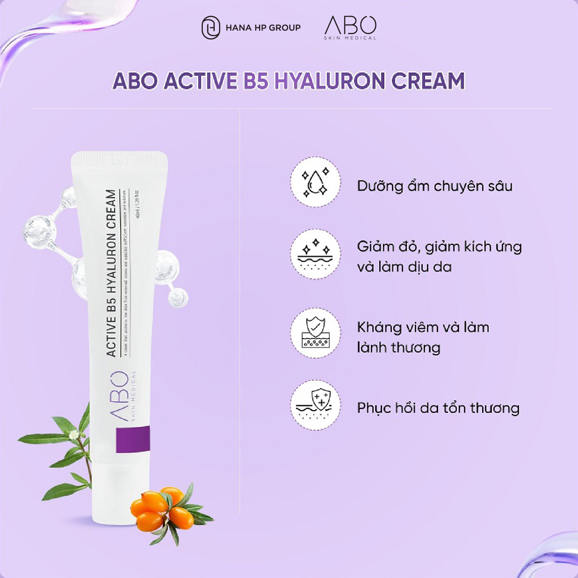Khi làn da của bạn trở nên nhạy cảm, khô căng hay dễ kích ứng sau các liệu trình làm đẹp, đặc biệt là các liệu trình xâm lấn, bạn nên bổ sung vào chu trình dưỡng da của mình thêm một loại kem dưỡng phù hợp để giúp da phục hồi tốt hơn. ABO ACTIVE B5 HYALURON CREAM được phát triển nhằm đáp ứng nhu cầu đó nhờ công thức dịu nhẹ, hiệu quả và an toàn cho mọi loại da. Sản phẩm không chỉ giúp làm dịu và phục hồi nhanh chóng mà còn tăng cường khả năng bảo vệ da trước các tác động từ bên ngoài.
