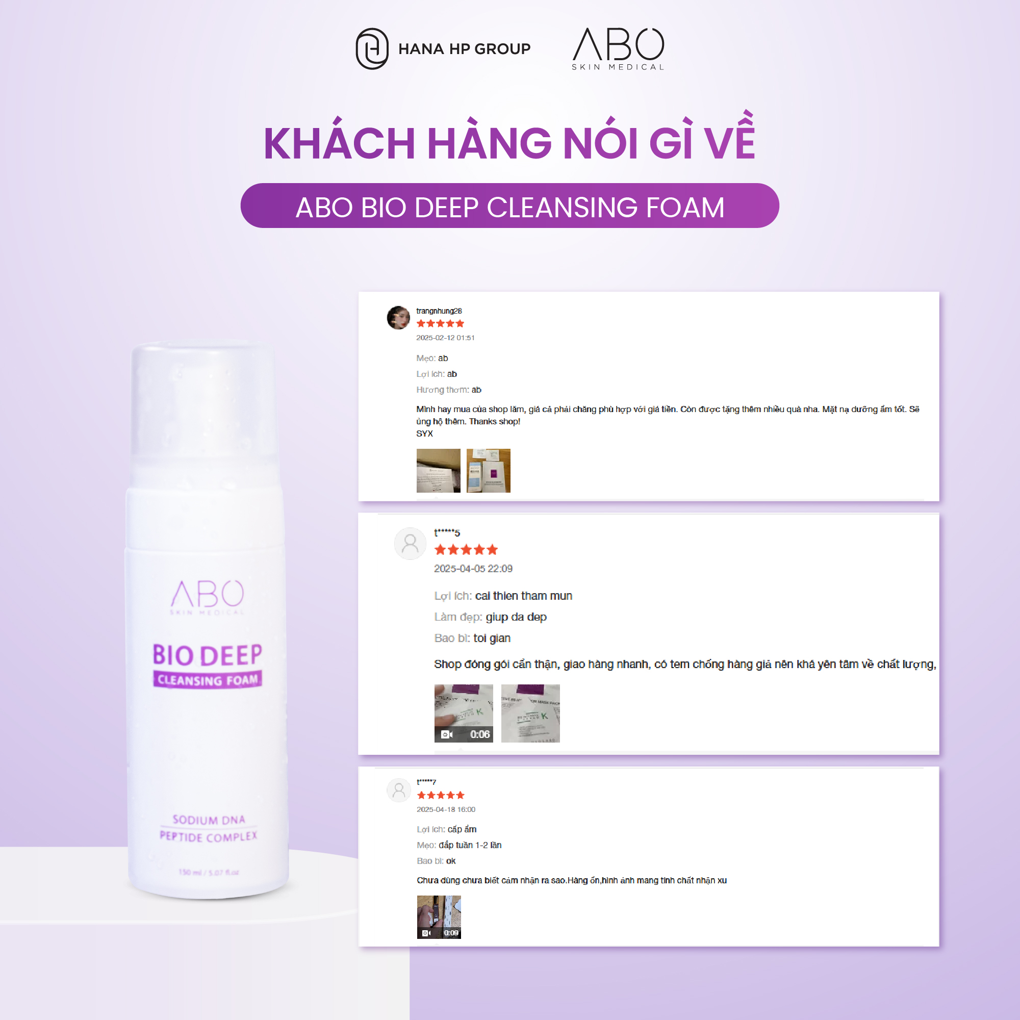 ABO BIO DEEP CLEANSING FOAM là sữa rửa mặt dạng bọt mịn, kết hợp công nghệ tế bào gốc cùng Hyaluronic Acid và Vitamin B5 giúp làm sạch sâu lớp dầu thừa, cặn trang điểm và bụi bẩn mà không cần rửa lại nhiều lần. Với công thức dịu nhẹ, sản phẩm phù hợp cho cả da nhạy cảm, đồng thời hỗ trợ cấp ẩm, làm dịu và nuôi dưỡng làn da mềm mịn, căng bóng mỗi ngày.
